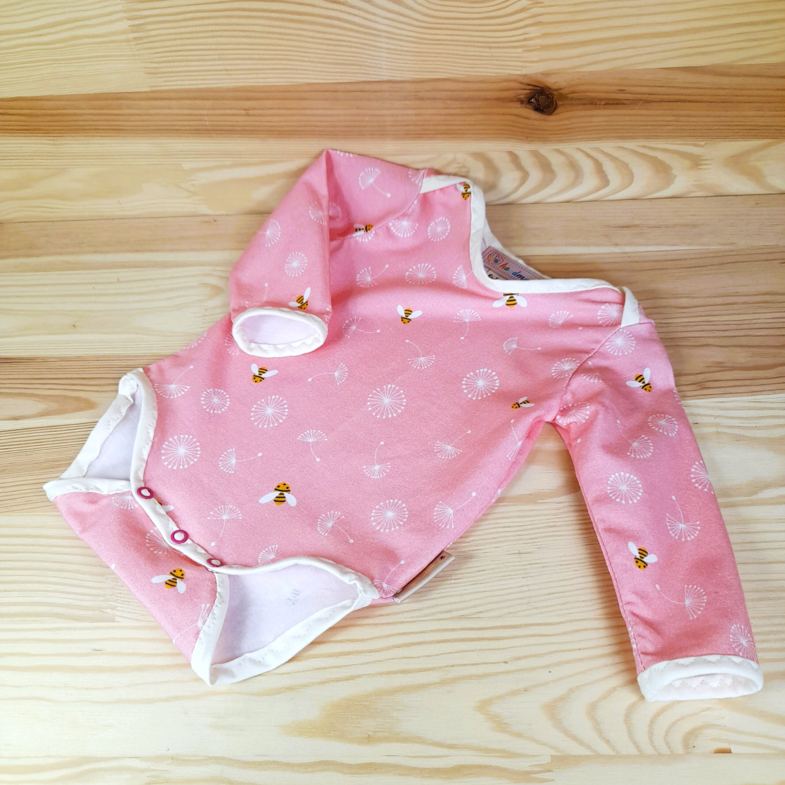 Baby-Body Langarm rosa/beige mit Bienen 74/80